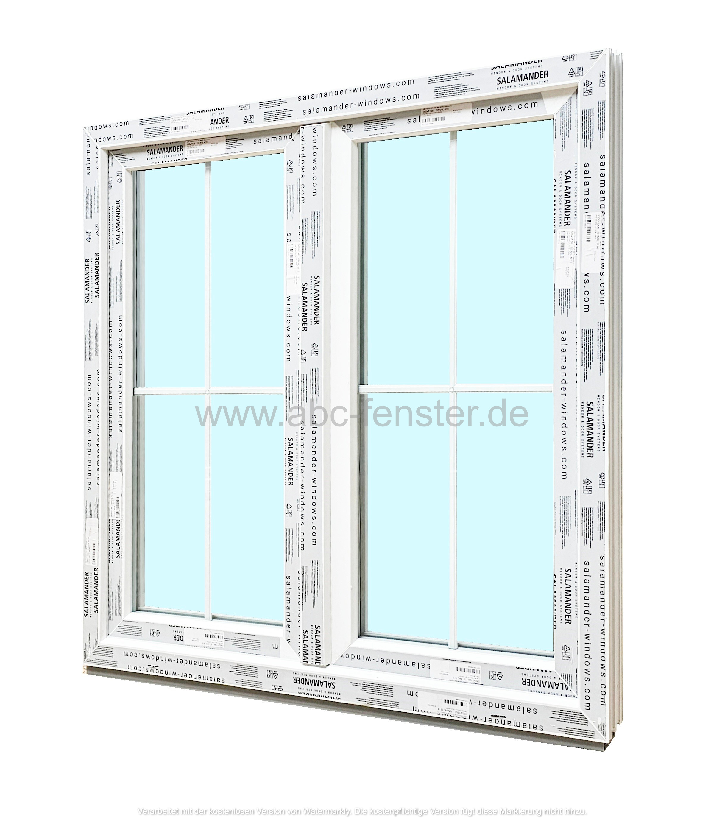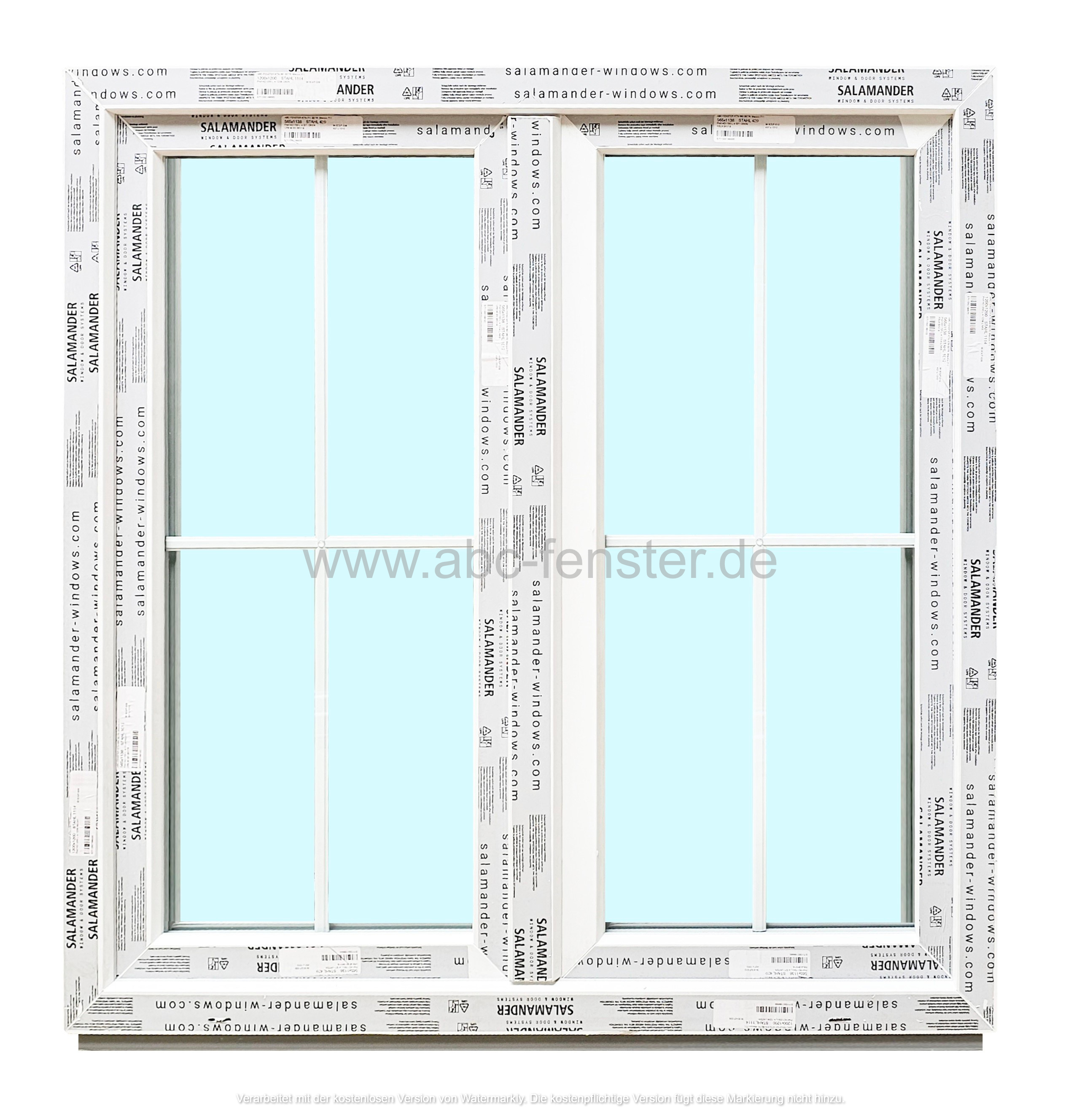Kunststofffenster Salamander 72 mm, 2 flügelig, Farbe weiß, mit innenliegender Kreuzsprosse
