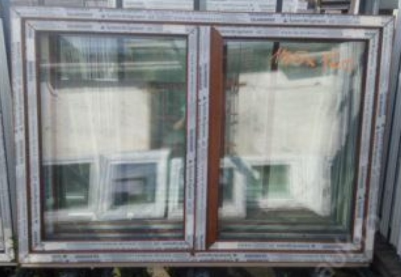 Kunststofffenster Salamander 72 mm, 2 flügelig, Farbe Aussendekor eiche gold und innen weiß