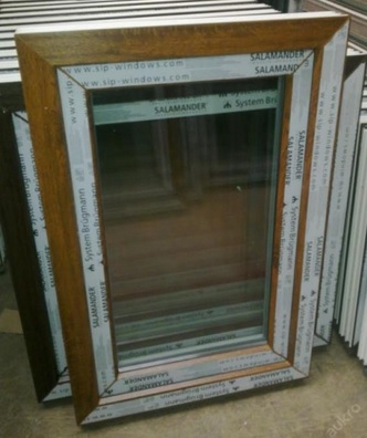 Kunststofffenster Salamander 72 mm, 1 flügelig, Drehkipp, Farbe Aussendekor eiche gold und innen weiß
