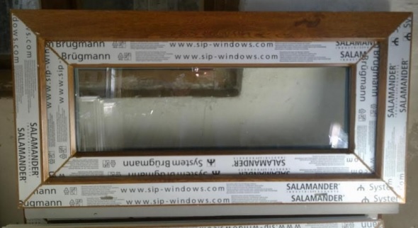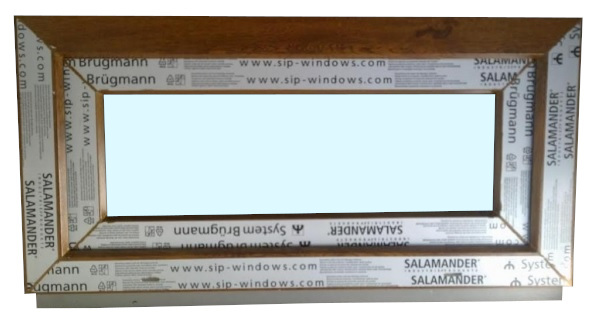 Kunststofffenster Salamander 72 mm, 1 flügelig, Kippöffnung, Aussendekor eiche gold und innen weiß